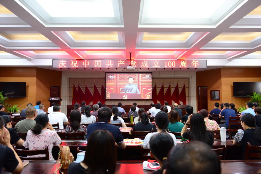 7月1日上午8點,慶祝中國共產黨成立100周年大會在北京天安門廣場隆重舉行。中共中央總書記、國家主席、中央軍委主席習近平發表重要講話。我校全體共產黨員在終身教育大講堂集中收看了慶祝大會的現場直播,共慶中國共產黨百年華誕。