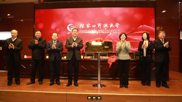 2021年12月18日,張家口開放大學揭牌儀式成功舉行。河北開放大學黨委書記籍獻平,張家口市政府副市長閆利艷,張家口市政府副秘書長宋建軍,張家口市委組織部四級調研員黃秀榮,張家口市委教育工委書記、市教育局局長杜平,市教育局副局長賀志英,張家口市職業技術教育中心黨委書記、校長李雪梅和副書記王玉民、原張家口廣播電視大學黨委書記許桂友,張家口開放大學黨委書記楊汝明、校長張宏文等出席揭牌儀式,揭牌儀式由張宏文主持,杜平宣讀了《河北省教育廳關于同意張家口廣播電視大學更名為張家口開放大學的函》。