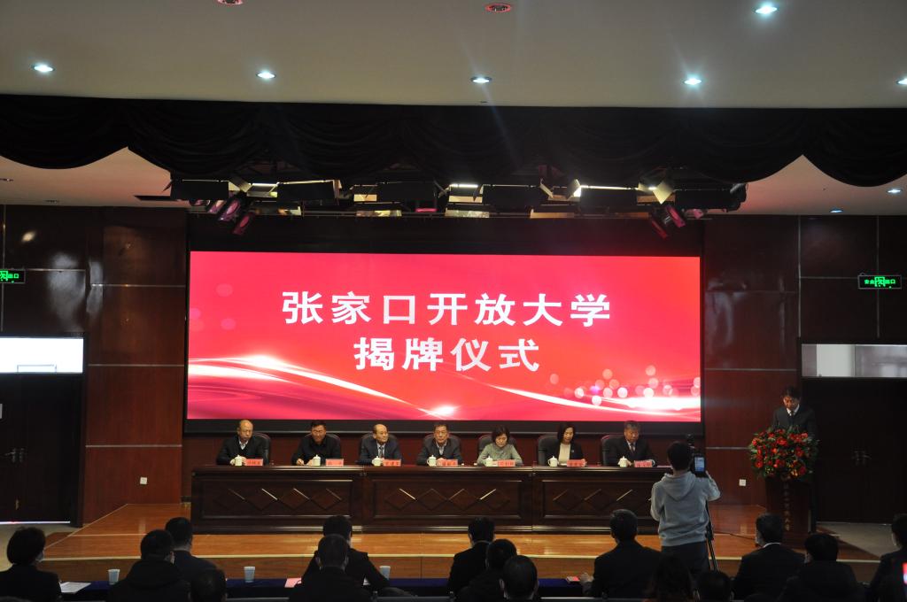 在熱烈的氣氛中,籍獻平,閆利艷等共同為張家口開放大學揭牌。