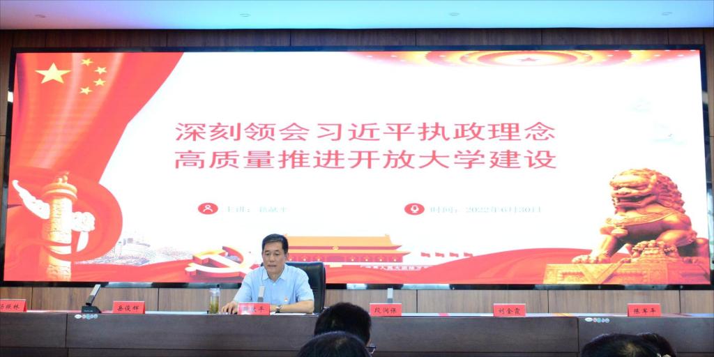 黨委書記籍獻平為全體黨員講授“七一”專題黨課。黨課的主題是《深刻領會習近平執政理念 高質量推進開放大學建設》,通過回顧黨的十八大以來,以習近平同志為核心的黨中央以偉大的歷史主動精神、巨大的政治勇氣、強烈的責任擔當,推動黨和國家事業取得的歷史性成就、發生的歷史性變革,深刻闡釋了習近平新時代中國特色社會主義思想的內涵,讓大家感受到習近平總書記的執政理念以及取得的偉大歷史成就。