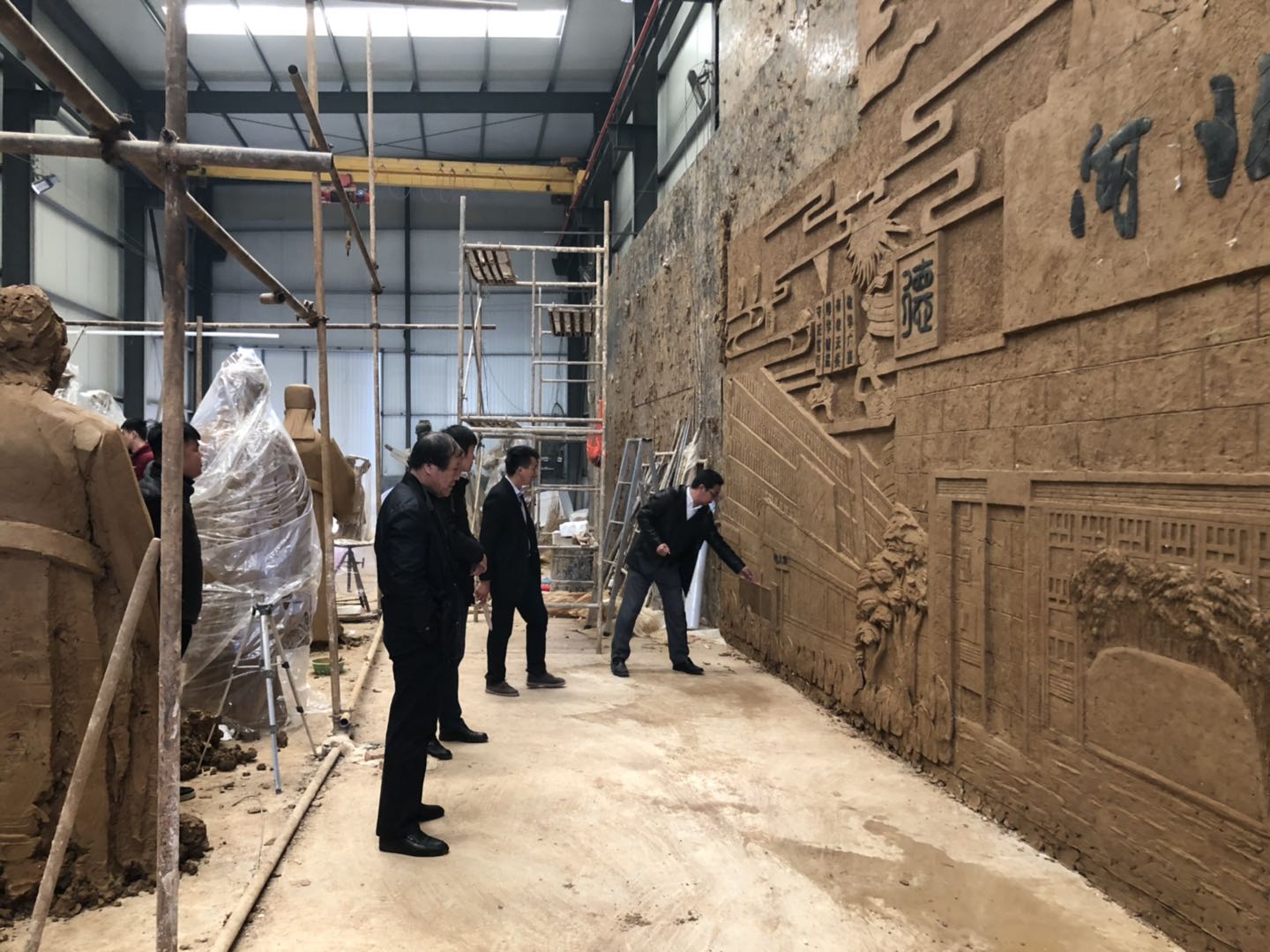 11月9日,校黨委副書記岳俊輝驅車百公里,赴曲陽雕塑產業園區檢查我校校史雕塑墻制作進展情況。