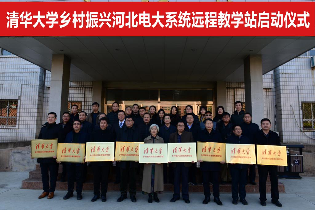 啟動儀式上,刁慶軍為清華大學鄉村振興河北廣播電視大學教學站以及唐山、保定、衡水、邢臺市電大所屬八個縣(區)級廣播電視大學教學站授牌。