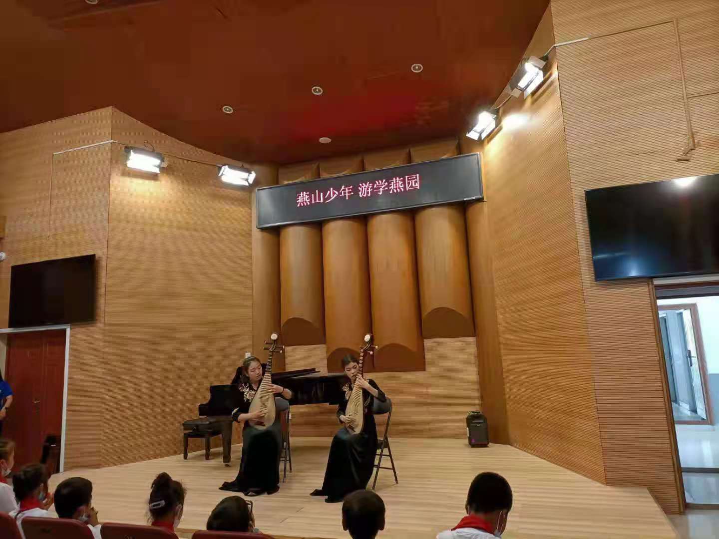 學校藝術學院的大學生們用琵琶、古箏、二胡等樂器給孩子們上了一場中國傳統音樂欣賞課。游戲環節中,孩子們在志愿者們的鼓勵下很快融入互動中,不斷參與和競答,興致昂揚,現場氣氛熱烈。