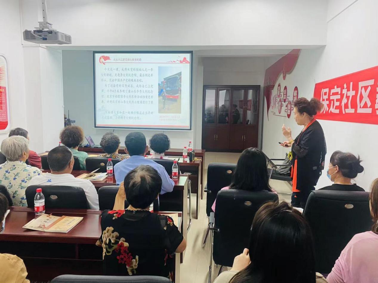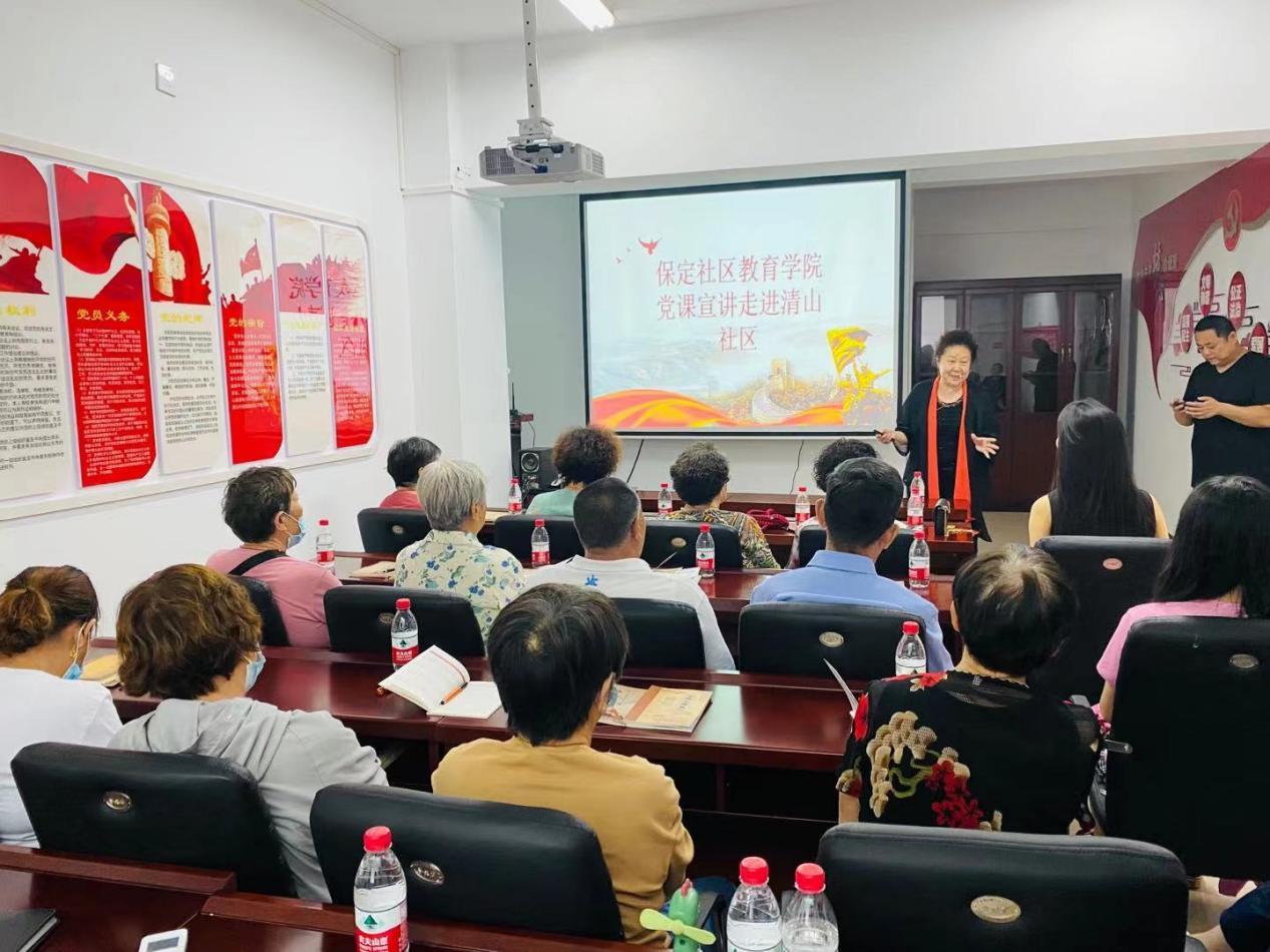6月15日,保定電大黨史宣講走進蓮池區清山公爵城社區。本次宣講由保定社區教育學院特聘專家趙老師主講,為社區黨員和居民上了一堂生動而又深刻的黨史學習教育主題黨課。以講堂助服務,以講堂助和諧,以講堂促進轄區居民文明程度的不斷提升,從而營造知史愛黨、知史愛國的濃厚社區氛圍。