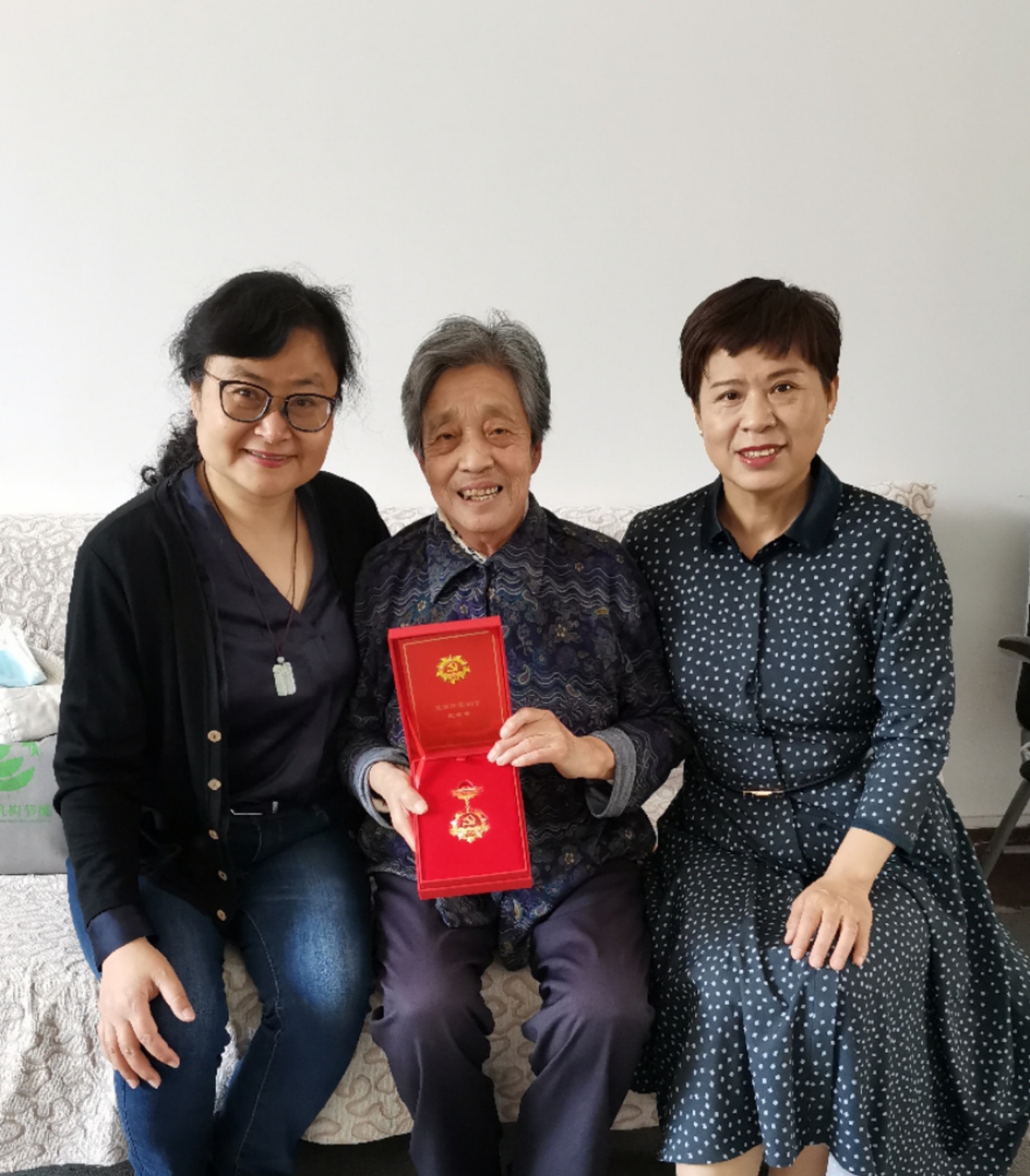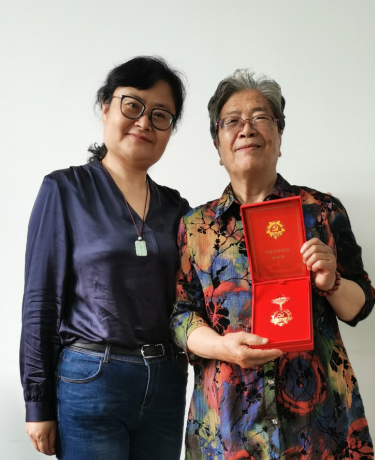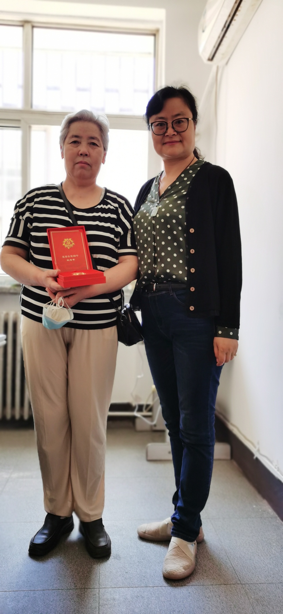 七一之前,老干部處主任張群、成員王秀娟,帶著秦皇島市廣播電視大學領導的囑托,為我校黨齡超過50年的退休教師頒發“光榮在黨50年”紀念章。