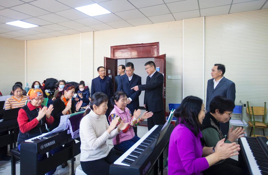 揭牌儀式結束后,籍獻平在廊坊開放大學校領導的陪同下,觀摩了合唱教室、茶藝室、心理沙盤室、書畫室、鋼琴室、VR體驗室等社區教育體驗室的教學活動。