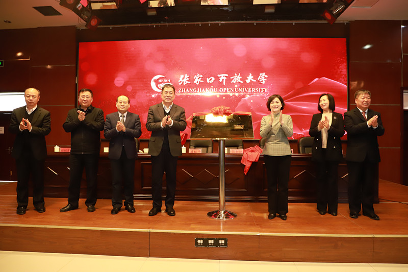 在熱烈的氣氛中,河北開放大學黨委書記籍獻平、張家口市政府副市長閆利艷為張家口開放大學揭牌!
