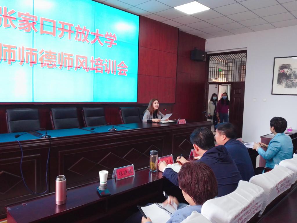 為深入貫徹習近平總書記關于教育工作的重要講話,結合教育部關于加強師德師風建設的具體要求,進一步落實立德樹人根本任務,建設高質量教育體系,打造一支德才兼備的高素質開放大學教師隊伍,4月12日下午,張家口開放大學組織全體教師收聽收看國家開放大學教師師德師風培訓會。參加本次培訓會的領導有張家口開放大學黨委書記楊汝明、校長張宏文、副校長黃永亮、張麗桃、紀委書記高海琴、副校長陳瑞芬,張家口開放大學全體教職工參會。