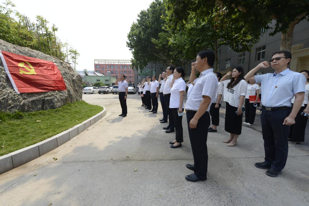 宣誓儀式在激昂的《國際歌》聲中拉開了序幕。面對鮮紅的黨旗,黨委書記侯希昌同志領(lǐng)讀誓詞宣誓,全體黨員右手舉拳,聲音洪亮,鄭重宣誓,“我志愿加入中國共產(chǎn)黨,擁護(hù)黨的綱領(lǐng),遵守黨的章程...”,一聲聲錚錚的誓言,在鮮艷的黨旗下久久回蕩,展示著他們對黨堅(jiān)定不移的忠誠和信念,表達(dá)著為黨的事業(yè)奮斗終生的決心。