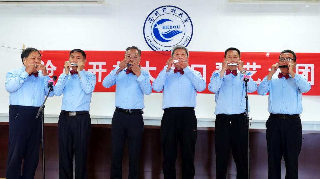 6月23日上午,在黨的二十大即將召開之際,滄州開放大學口琴藝術團成立儀式暨首場演出在學校三樓多功能廳成功舉辦。滄州開放大學黨委書記熊俊杰、黨委副書記、校長崔學強,副校長王少云出席典禮并觀演。滄州電視臺進行現場錄制。