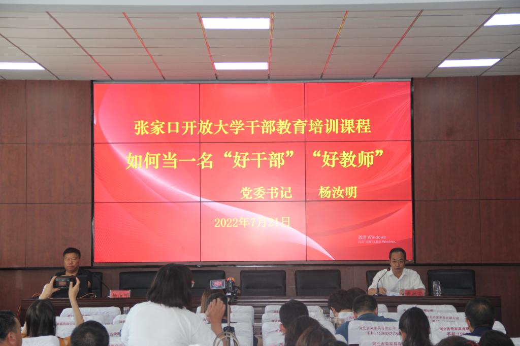 為學(xué)習(xí)貫徹近期張家口市委關(guān)于深入推進(jìn)“解放思想、真抓實(shí)干,交好本地發(fā)展優(yōu)異答卷”大討論和張家口市委教育工委開(kāi)展“向張桂梅同志學(xué)習(xí),爭(zhēng)做‘四有’好老師”學(xué)習(xí)教育活動(dòng),進(jìn)一步統(tǒng)一思想、提高認(rèn)識(shí),推動(dòng)全校上下形成解放思想、轉(zhuǎn)變作風(fēng)、改進(jìn)工作的良好氛圍,凝聚起推進(jìn)學(xué)校“爭(zhēng)創(chuàng)一流、走在前列”強(qiáng)化內(nèi)涵建設(shè)的強(qiáng)大動(dòng)力。7月21日,張家口開(kāi)放大學(xué)召開(kāi)解放思想大討論干部培訓(xùn)專題教育,由學(xué)校黨委書(shū)記楊汝明作題為《如何當(dāng)一名“好干部”“好教師”》的專題講座。