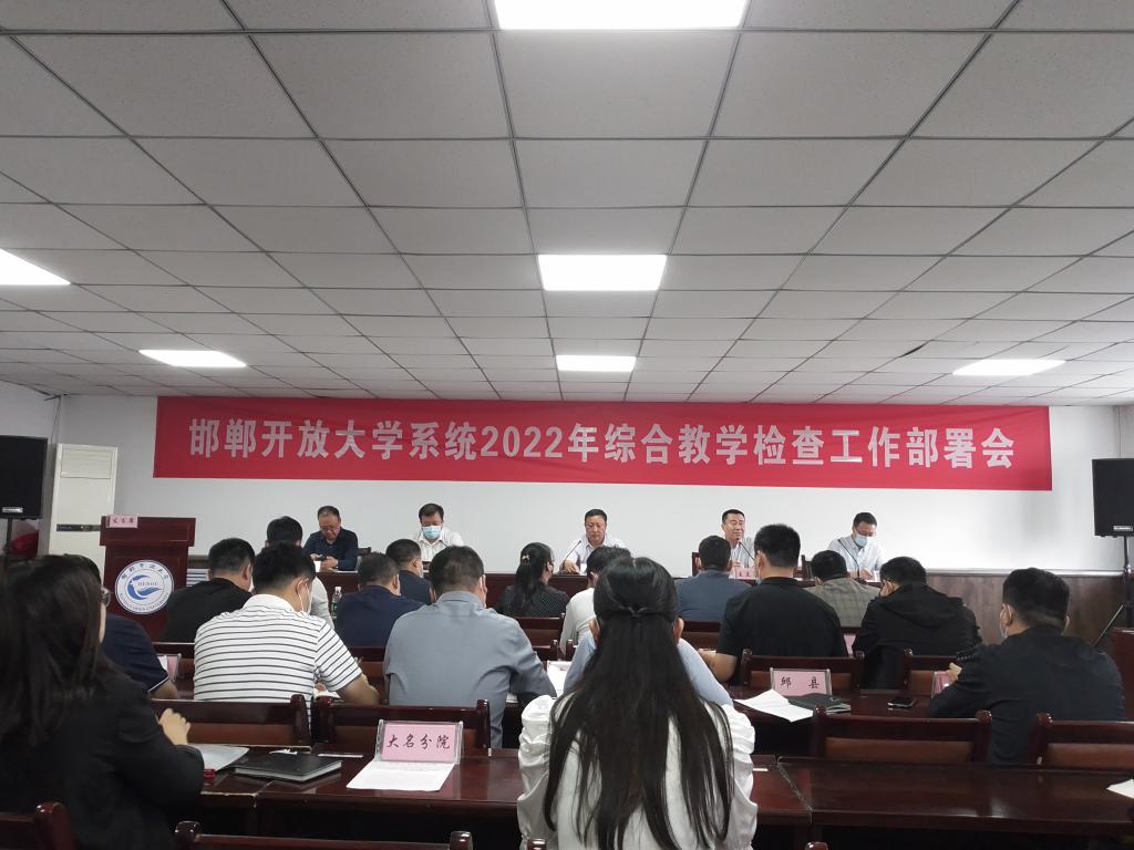2022年9月22日,邯鄲開放大學組織召開了全市系統2022年度綜合教學檢查工作部署會。會議由邯鄲開放大學黨委委員、副校長王立濤主持,黨委書記侯希昌,黨委委員、副校長王勇出席了會議,邯鄲市校相關部門領導及工作人員、各縣校及聯辦校主要領導參加了會議。