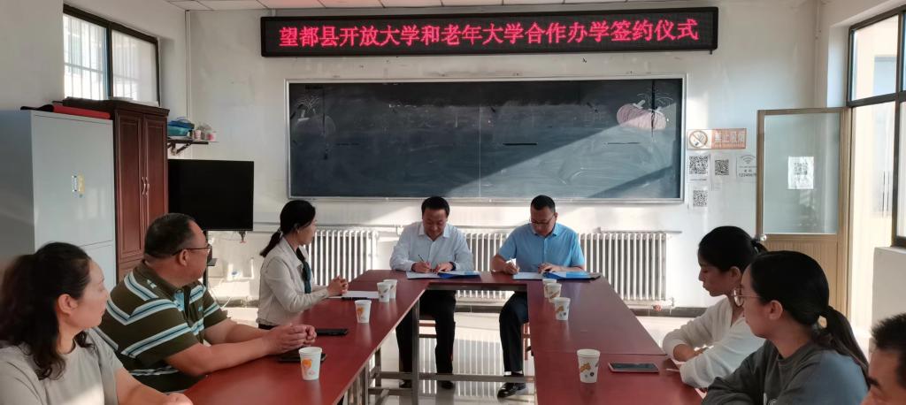 近日,望都縣教育和體育局與望都縣老干部局舉行合作辦學(xué)簽約儀式,開放大學(xué)與老年大學(xué)聯(lián)合辦學(xué),成立“望都縣社區(qū)(老年)教育終身學(xué)習(xí)體驗基地”。望都縣教育和體育局局長劉華和望都縣老干部局局長朱亞偉參加簽約儀式并代表雙方簽約,縣教工委委員王哲和老干部局主任科員問海蓮為老年大學(xué)授牌。