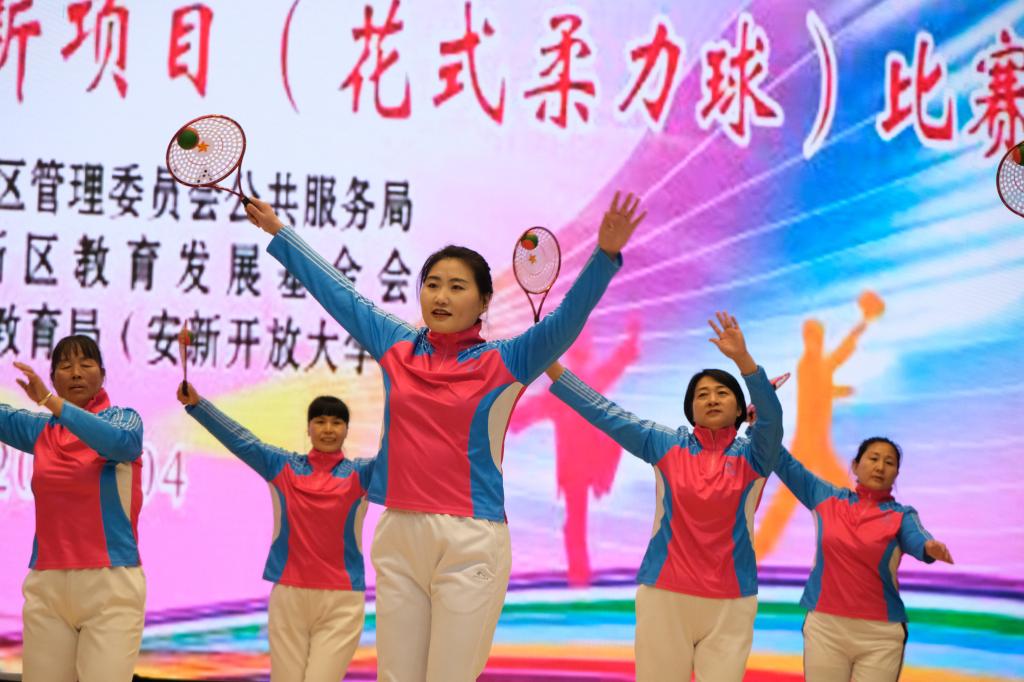 4月8日上午,由雄安新區(qū)公共服務(wù)局主辦,雄安教育發(fā)展基金會(huì)和安新開(kāi)放大學(xué)承辦的花式柔力球比賽在白洋淀文化廣場(chǎng)禮堂正式舉行。