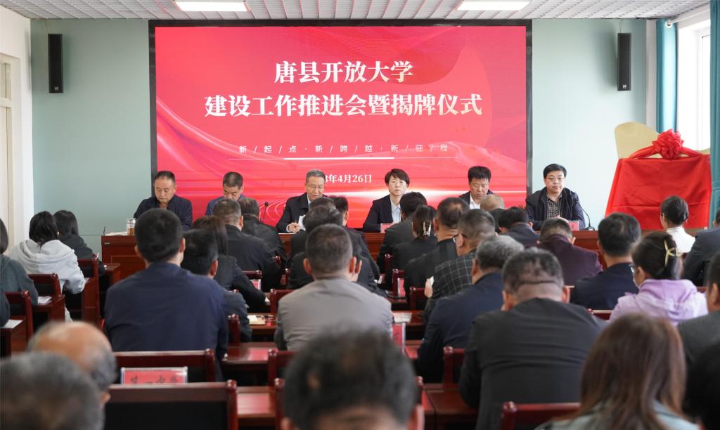 4月26日上午,唐縣開放大學舉行建設工作推進會暨揭牌儀式。保定開放大學黨委副書記馬俊瑞,唐縣人民政府副縣長劉華,唐縣教體局黨組書記、局長王英凱,教體局黨組副書記、副局長安仲軍,唐縣開放大學校長于紅光出席會議,會議由王英凱主持。