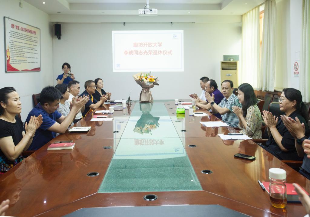 為進一步加強教師隊伍建設,體現黨內關懷,增強教師的使命感、榮譽感、幸福感、成就感,激勵廣大教職工學習發揚老教師的優良作風和高尚品格,履行教書育人和立德樹人職責,爭做“四有”好教師,當好中華民族偉大復興“筑夢人”,7月3日下午,廊坊開放大學舉辦了李琥同志榮譽退休儀式。黨委書記段再友,黨委副書記、校長馬利國,黨委委員、副校長姚東升,黨委委員呂中戰出席儀式,全體中層負責人和青年教師參加了退休儀式。儀式由姚東升主持。