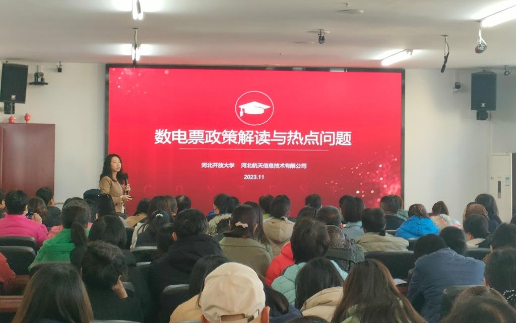 本次培訓(xùn)由于冰教授主持,于教授介紹了活動(dòng)的流程,解讀了此次活動(dòng)的背景、目的和意義。河北航天信息技術(shù)有限公司保定分公司的專家為參會(huì)人員講解了“數(shù)電環(huán)境下財(cái)稅一體化解決方案”,整個(gè)培訓(xùn)過程氣氛活躍。