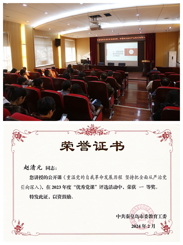 近日,中共秦皇島市委教育工委發布了《關于開展“優秀黨課”評比結果的通報》、《課程思政優質課評比活動獲獎情況的通報》,秦皇島開放大學黨委書記、校長趙清元的《重溫黨的自我革命發展歷程堅持把全面從嚴治黨引向深入》黨課獲一等獎。在“課程思政”優質課評比活動中,劉雪梅老師的《中國傳統佳節Chinese Traditional Festival》榮獲一等獎、李穎老師的《網絡購物中的侵權問題和安全問題》獲得二等獎。