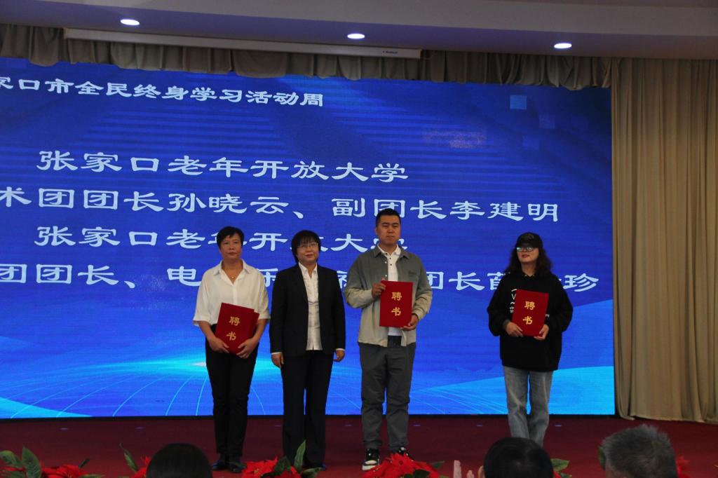 9月24日,2024年張家口市全民終身學習活動周啟動儀式在張家口開放大學舉行。本次啟動儀式式由張家口市教育局主辦,張家口市開放大學承辦,張家口市委宣傳部、市文旅局、農商行、市群藝館、宣化科技職業學院等單位有關負責人,各縣區教育局、市屬院校師生、全國全省“百姓學習之星”、河北省終身教育品牌項目獲獎單位及社區教育老年教育先進單位及優秀工作者共計200余人參加啟動儀式。張家口市教育局副局長賀志英出席啟動儀式并講話。