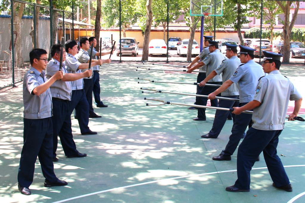 來自橋西區各類學校的100名保安員骨干參加培訓,通過突發事件應急演練,熟練掌握防護盾牌、安全鋼叉、橡膠警棍等器械的使用方法和注意事項,提高快速反應和應急處置能力,為師生安全、校園穩定提供有力保障。