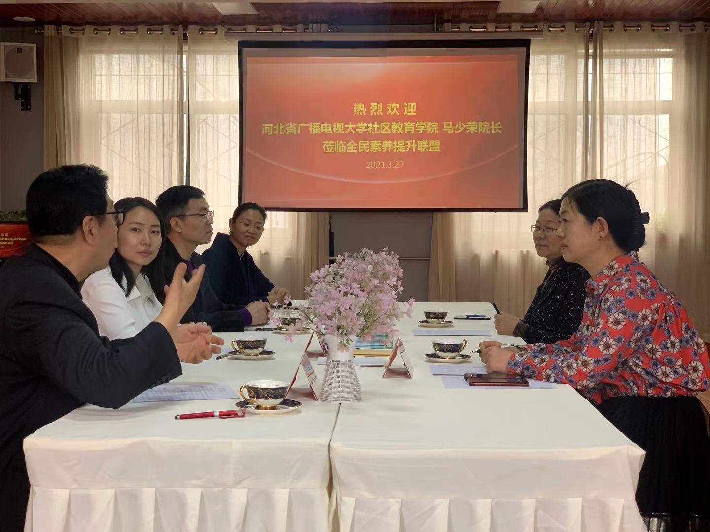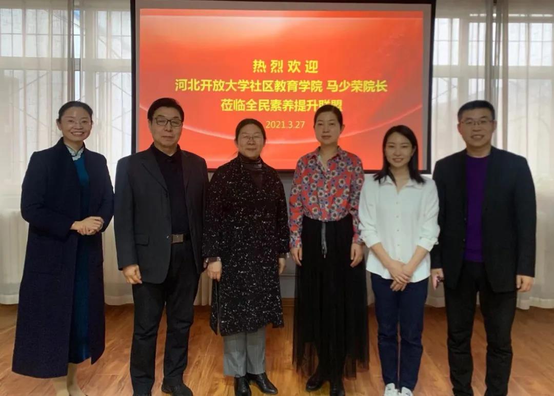 3月27日下午,河北開放大學社區教育學院院長馬少榮到保定電大終身學習體驗基地“全民素養提升聯盟”調研,保定廣播電視大學副校長趙國華陪同。全民素養提升聯盟理事長霍婉霖、常務理事長兼秘書長劉聰穎、顧問委員會主任董志軍、聯盟聯合發起人世界體操冠軍范曄參加座談會。