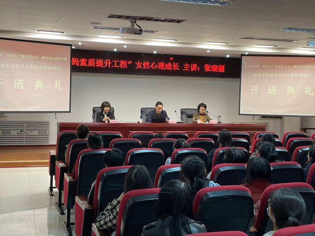 隨后,姚東升宣布,由廊坊市廣播電視大學(xué)、廊坊社區(qū)教育學(xué)院、安次區(qū)婦聯(lián)合作開展的“媽媽素質(zhì)提升工程”第一期培訓(xùn)班正式開班!