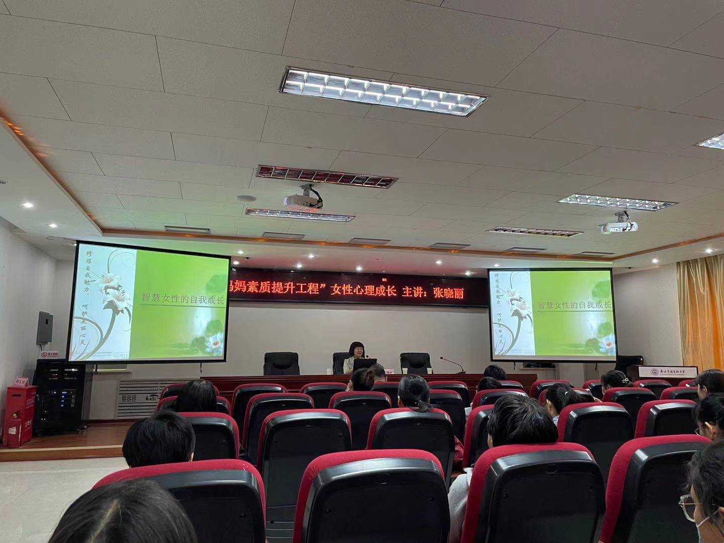 最后,張曉麗教授做開班首講《女性的心理成長(zhǎng)》。張曉麗從女性心靈滋養(yǎng)3+3、幸福女性的自我成長(zhǎng)、幸福密碼與成長(zhǎng)秘訣、家庭文化的掌門人和做智慧媽媽、與孩子共成長(zhǎng)四個(gè)方面講解了女性心理成長(zhǎng)的課程,課堂氣氛熱烈,課程內(nèi)容豐富,課后,女教工和學(xué)員們紛紛表示,通過學(xué)習(xí),獲益多多。廊坊電大的“媽媽素質(zhì)提升工程”為廣大女性朋友提供了一個(gè)提升自我的平臺(tái),以后還會(huì)積極參加后續(xù)的其他課程和活動(dòng)。