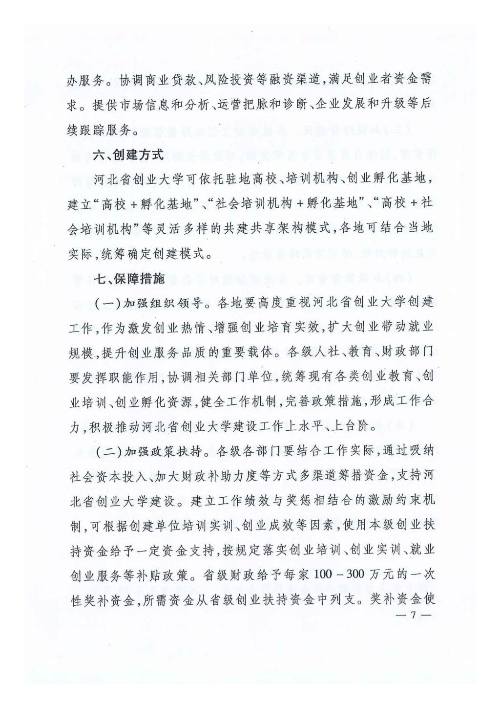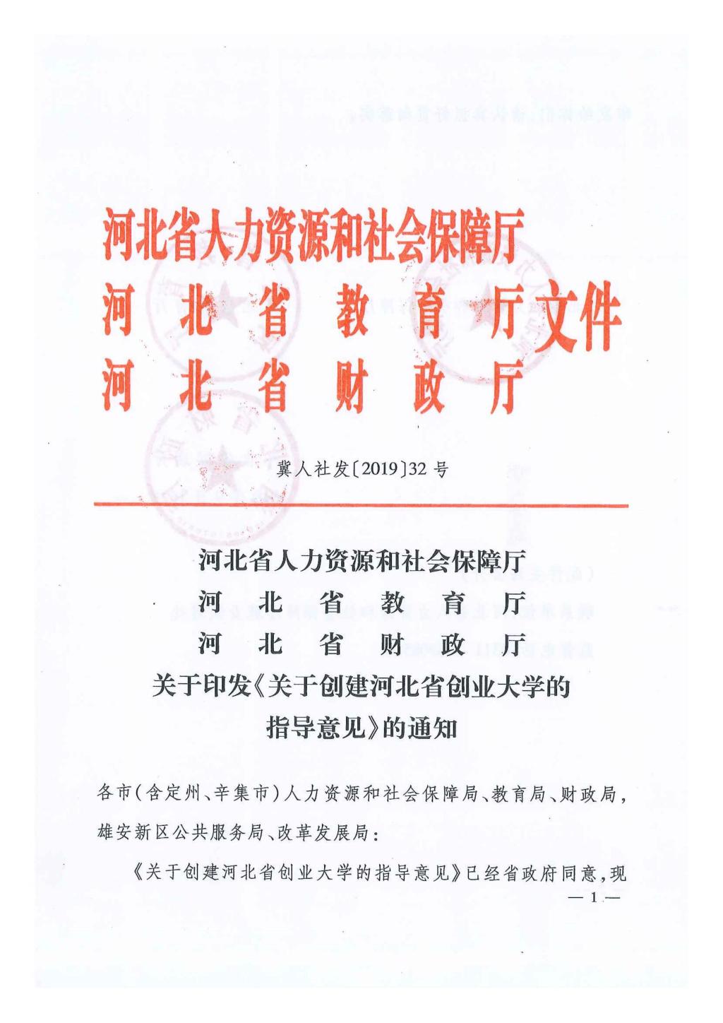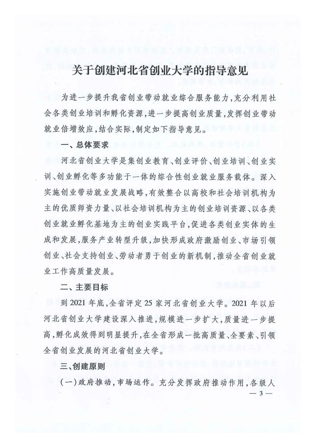 河北省人力資源和社會保障廳 河北省教育廳 河北省財政廳關于印發《關于創建河北省創業大學的指導意見》的通知
